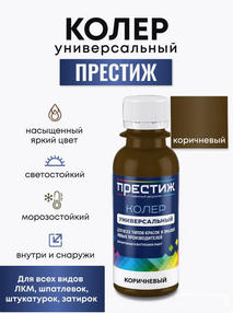 Универсальный колер – это незаменимый помощник в создании индивидуального дизайна интерьера или экстерьера. Он предназначен для колеровки самых разных видов красок, эмалей, лаков, шпатлевок и даже цементных составов. Колеровка с его помощью позволяет получить яркие и насыщенные оттенки, которые сохраняют свою первоначальную насыщенность даже под воздействием солнечных лучей. Характеристики: Назначение: для наружных и внутренних работ. Запах: отсутствует. Условия транспортировки: морозостойкий (до -40 °С). Объем: 100 мл. Состав: пропиленгликоль, пигменты, вода, функциональные добавки. Очистка инструмента и рук: теплая вода с мылом. Преимущества: Одним из главных преимуществ колера является его универсальность. Он подходит для работы как с красками на водной основе (латексными и акриловыми), так и с материалами на основе органических растворителей (алкидными). Это делает его идеальным выбором для колеровки масляных красок на основе олифы, а также для создания неповторимых оттенков на поверхностях из цемента, штукатурки или затирки для швов. Применение универсального колера позволяет значительно расширить возможности при проведении наружных и внутренних отделочных работ. В зависимости от желаемого результата, можно получить как нежные пастельные тона, так и глубокие насыщенные оттенки. При этом, цвета будут гармонично сочетаться между собой и не вызовут трудностей при смешивании материалов. Колеровочная паста не содержит сиккативы, включающие металлы химических веществ 1-го класса опасности, количество которых в пересчёте на сухой остаток превышает 0,5 %, не содержит свинцовые кроны. Универсальный колер является надежным и удобным инструментом для создания уникального дизайна дома, офиса или любого другого помещения. Он позволяет экспериментировать с цветами и оттенками, сохраняя при этом высокое качество и долговечность покрытия. Рекомендации: вводить в краски не более 10%. Применение: перед использованием флакон с пастой встряхнуть, добавить необходимое количество в небольшую часть краски, перемешать. Полученную смесь добавить при постоянном перемешивании в остальную часть краски, вновь тщательно перемешать. Утилизация: не выливать в канализацию, водоёмы, на почву. Сухую пустую тару утилизировать как бытовые отходы, жидкие остатки передать в места сбора вредных веществ. 125,00 ₽ / шт