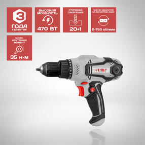 Ставр ДШС-10/470 Дрель-шуруповерт сетевая 470Вт,