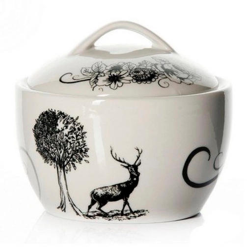 Сахарница оснащена крышкой для лучшего хранения продукта. Изделие оформлено оригинальным незатейливым узором в виде оленя у цветущего дерева и цветочным узором на крышке. Эксклюзивный дизайн и функциональность сахарницы сделают ее незаменимой на любой кухне. 625,80 ₽ / шт