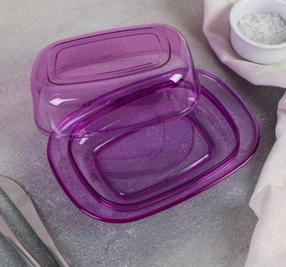 МАСЛЁНКА Dunya Рlastik 30302 ✅Масленка прозрачная пластиковая Dunya Рlastik используется для хранения и подачи сливочного масла на стол. ✅Устойчива к воздействию внешней среды, не впитывает запахи. ✅Удобная и простая в уходе масленка займет достойное место на вашей кухне благодаря элегантному дизайну и высокому качеству. ➡Материал: пластик Размер: 17.4х12.5х6.5 см 199,00 ₽ / шт
