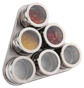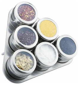 Набор для специй на магнитах ZEIDAN Z-11022. В наборе 7 предметов из нержавеющей стали. В наборе: 6 баночек с магнитным дном и с крышками со стеклянным окошком; удобная подставка из нержавеющей стали. 1 380,00 ₽ / шт
