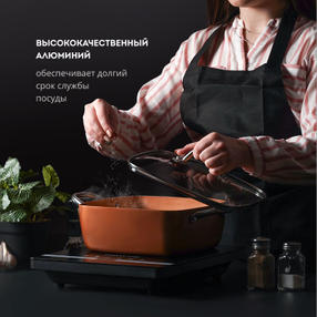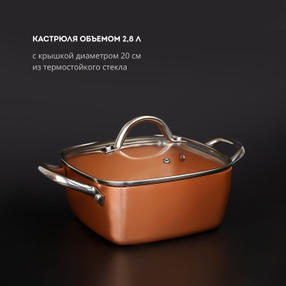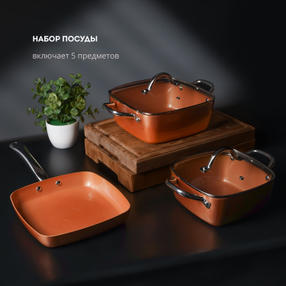 Набор посуды GALAXY LINE GL9514 включает 5 предметов: кастрюля объемом 4 литра с крышкой, кастрюля объемом 2,8 литра с крышкой, сковорода диаметром 24 см. Эргономичная квадратная форма посуды позволяет вместить больше продуктов во время приготовления, например котлет во время жарки. Бесспорным преимуществом данного набора являются толстые стенки и дно. Вся посуда выполнена из высококачественного алюминия толщиной 3 мм, что обеспечивает долгий срок службы. Постепенный и равномерный нагрев позволяет готовить вкусные ароматные блюда, сохраняя максимальное количество витаминов и полезных микроэлементов. Набор посуды GALAXY LINE имеет специальное антипригарное покрытие, которое исключает подгорание и прилипание пищи, позволяя готовить с минимальным количеством масла. Дополнительным преимуществом набора посуды GALAXY LINE GL9514 является универсальная крышка, которая подходит как для кастрюли 4 литра, так и для сковороды. Крышки в наборе выполнены из термостойкого стекла с отверстием для выхода пара. Такая конструкция исключает образование конденсата и позволяет контролировать процесс приготовления. Все ручки в наборе посуды GL9514 выполнены из долговечной нержавеющей стали. Они прикручены, а не приварены, что обеспечивает долгий срок службы и отсутствие нагрева. Термоаккумулирующее дно подходит для всех типов плит, в том числе индукционных. Стоит также отметить приятную карамельную цветовую гамму. Стильный и практичный набор посуды GALAXY LINE GL9514 идеально впишется в интерьер Вашей кухни. Объем кастрюль,л: 2,8/4 Крышки из жаропрочного стекла: Да Термоаккумулирующее дно: Да Материал: Высококачественный алюминий толщиной 3 мм Материал покрытия: Антипригарное Эргономичная ручка: Нержавеющая сталь Подходит для всех типов плит: Да Габаритные размеры упаковки, см: 58,5х28,5х12 Вес брутто, кг: 3,975 4 999,00 ₽ / шт