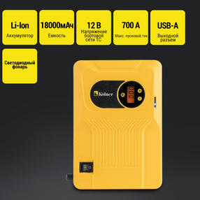 Аккум. пуско-зарядное устройство, 700А, 12В, Kolner KBJS 700/18AC, Li-lon емкость 18Ач