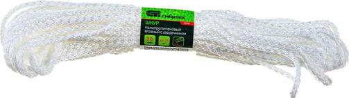 Шнур вязаный полипропиленовый с серд. белый, 4 мм, L20 м, Россия// Сибртех 93957
