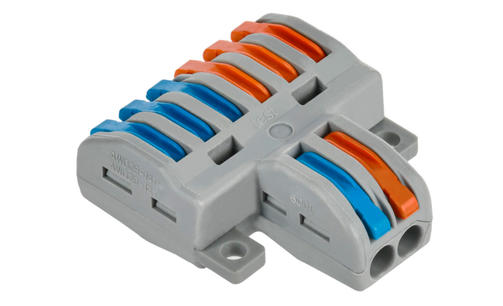 Клемма строительно-монтажная проходная разветвительная серии 222 предназначена для соединения одножильных и многожильных медных проводников без использования инструмента в электрических сетях переменного и постоянного тока. Клемма допускает многократное присоединение и отсоединение проводников. Количество подключаемых проводников - 2/6. 189,00 ₽ / шт