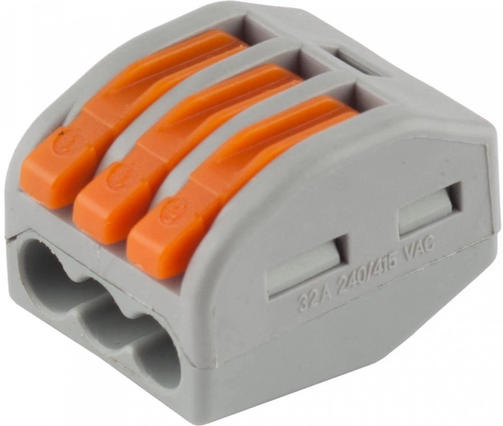 Клемма разъемная, 3-х проводная с сердечником из высококачественной меди и прижимной пластиной из пружинной стали с антикоррозийным покрытием. Тип подключаемых проводов: одножильные и многожильные, максимальная сила тока 32 А, максимальное номинальное напряжение 400 В. 80,00 ₽ / шт