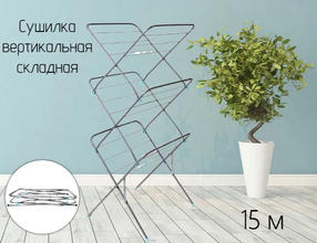 Прочный металлический каркас и струны с антикоррозийным покрытием Раскладывается в вертикальное положение Занимает минимум места Пластиковые наконечники на опорах для предотвращения скольжения и защиты от повреждений Удобный механизм складывания Длина сушильного полотна 15 м Максимальная нагрузка - до 10 кг 1 665,00 ₽ / шт