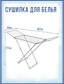 Сушилка для белья напольная складная СБ2. 20 метров сушильного полотна. Цвет каркаса - серебро.Современные и удобные сушилки для белья экономят пространство в доме. Выполнив свою функцию, легко складываются и не занимают полезное пространство. Сушилки изготовлены из легких и прочных материалов, благодаря которым, служат очень долго. При необходимости боковые детали сушилки можно сложить «домиком» и сушить трикотажные вещи. Материалы: металлический каркас, пластмассовые наконечники. Габариты в раскрытом виде (ДхШхВ) 1970х540х1110 мм. Габариты в сложенном виде (ДхШхВ) 1300х540х40 мм. Масса сушилки 3,40 кг. Максимальная нагрузка 17 кг. 1 760,00 ₽ / шт