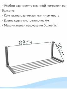 22 СН80/С Сушилка 80 СЕРАЯ для белья настенная Ника