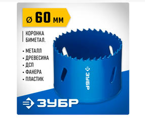 ЗУБР 60 мм, сталь Р6М5, биметаллическая коронка (29531-060)