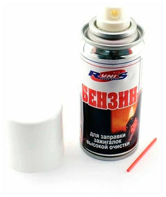Бензин высокой очистки RUNIS аэрозоль 140 мл. Для Бензиновых зажигалок и каталитических грелок Бензин для зажигалок с высокой степенью очистки позволяет избавиться от запаха – при его попадании на руки или одежду, бензин быстро испаряется. Бензин для зажигалок Runis с высокой степенью очистки можно использовать для заправки зажигалок, обезжиривания поверхности и в качестве очистителя. Жестяная банка дает дополнительную гарантию безопасности. Бензин Runis 140 мл подходит для любых бензиновых зажигалок. При заправке зажигалки или использовании бензина в качестве очищающего средства необходимо соблюдать осторожность – в помещении не должно быть источников открытого огня. Кроме того, помещение должно хорошо проветриваться. При хранении следует убирать бензин дальше от детей. Применяется для заправки бензиновых зажигалок, каталитических грелок, паяльных ламп и горелок, а также для обезжиривания поверхностей, удаления жирных или масляных пятен, включая смолу и краски на основе растворителя, клейких этикеток и остатков клея. Перед применением баллон необходимо встряхнуть и вставить трубку в диффузор. Состав: нефрас С2-80/120, пропелент углеводородный. Объём 140 мл. Производитель: "RUNIS" Россия. 170,00 ₽ / шт