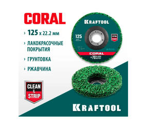 Полимерно-шлифовальный синтетический абразивный круг KRAFTOOL Coral 125x22.2 мм 36599-125 обладает максимально возможной производительностью при зачистке металла и древесины от ржавчины, застарелых лакокрасочных покрытий, грунтовок и других отделочных материалов. 950,00 ₽ / шт