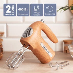 Стильный электрический миксер GALAXY LINE с двумя видами насадок легко и быстро поможет взбить крем, приготовить соус или замесить жидкое тесто. Благодаря удобной кнопке переключения вы сможете выбрать 1 из 5 скоростей для взбивания или смешивания ингредиентов согласно рецепту. Насадки-венчики позволяют смешивать и взбивать ингредиенты до идеального результата – от яичных белков и взбитых сливок до жидкого теста, соусов и других блюд. Прочные насадки для замешивания теста быстро приготовят тесто средней густоты для пудингов и бисквитов. Удобно расположенная кнопка извлечения насадок позволяет легко менять венчики и упрощает уход за миксером после окончания работы. Благодаря стильному дизайну миксер гармонично впишется в интерьер вашей кухни и не займет много места. Книга рецептов в комплекте позволит разнообразить рацион питания вашей семьи. Нежнейшие кремы и глазурь, аппетитные соусы и пюре, ароматные блинчики и бисквиты – с миксером GALAXY LINE вы можете больше! 1 971,00 ₽ / шт