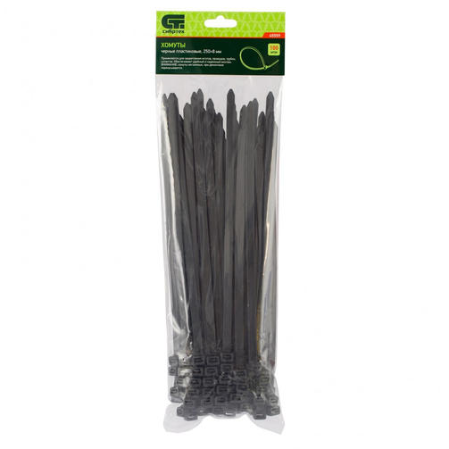 Хомуты, 250 х 8 мм, пластиковые, черные, 100 шт Сибртех 45559