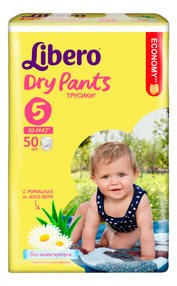 Нейтральный запах без отдушек — детские трусики Libero Dry Pants 5 Maxi plus (Либеро Драй Пантс 5 Макси плюс) В поисках удачных подгузников родители пробуют множество вариантов. Супердышащие детские трусики Libero Dry Pants 5 Maxi plus — это гарантия хорошего самочувствия и отличного настроения малыша. Трусики мало чем отличаются от обычного хлопкового белья, они — тонкие, легкие, не стесняют движений, совершенно не ощутимы на теле. Карапуз может спокойно играть, бегать, ползать или спать — его кожа всегда будет оставаться сухой благодаря супервпитывающей сердцевине изделия и верхнему пористому слою. Характеристики изделий: возраст: 10-24 месяца вес ребенка: 10-14 кг размер: 5 Maxi plus в упаковке: 50 шт пол: универсальные назначение: дневные, ночные в упаковке трусики с двумя видами рисунков основной материал: мягкое гигиеничное волокно целлюлозы не содержат отдушек подходят для детей со склонностью к аллергическим реакциям супервпитывающий внутренний слой с приятной шелковистой поверхностью время впитывания влаги: 3 секунды наружный «дышащий» слой с микропорами моментальное выведение влажных паров широкий эластичный поясок боковые резиночки — защита от протекания товар соответствует европейским стандартам качества и гигиены. Размеры упаковки: ширина — 15 см длина — 25 см высота — 38 см. Вес упаковки: 2,051 кг. 25,00 ₽ / шт