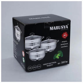 Набор кастрюль MARUSYA 3001м из нерж. стали 6 пр. , (1,8л, 2,5л, 3,1 л)