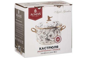 КАСТРЮЛЯ ЭМАЛИРОВАННАЯ AGNESS С КРЫШКОЙ, ЯБЛОНЕВЫЙ САД 2,1Л, ДИА.16СМ. 950-521 Lefard