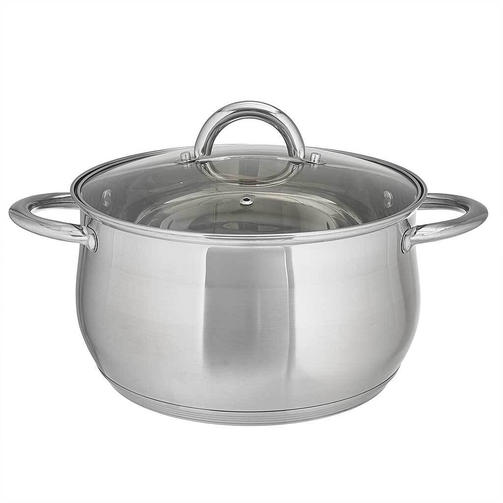 Кастрюля 5 л, 22 см, из нержавеющей стали со стеклянной крышкой WEBBER BE-354/2 Параметры Объем 5 л Диаметр 22 см Высота 13 см Толщина стали 0,5 мм Описание Кастрюля из высококачественной нержавеющей стали Серия: Aurora Стеклянная крышка с отверстием для отвода пара Термосберегающее пятислойное дно с повышенной термоотдачей Специальная форма, исключающая скопление остатков пищи и жира Быстрый нагрев пищи, длительное удержание тепла Для приготовления пищи достаточно небольшого количества воды и масла Минимальные потери минеральных веществ, витаминов и вкусовых качеств Может быть использована на всех типах кухонных плит, включая индукционные Подходит для мытья в посудомоечной машине 1 655,00 ₽ / шт