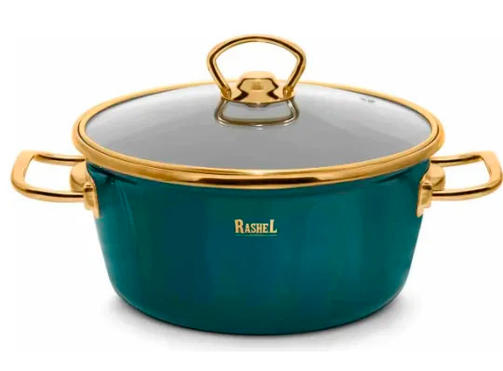 Кастрюля Rashel R0424, 4,5 л эмалированная со стекл. кр., ручка золото; цвет: зелёный
