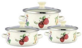 Набор мини-кастрюль из высококачественной углеродистой стали с внутренним и внешним эмалированным покрытием. Эмалированное покрытие безопасно, защищает пищу от проникновения ионов металлов, к тому же, на гладкой поверхности эмали не способны размножаться бактерии. Посуда универсальна - подходит для приготовления пищи, хранения готовой еды, сервировки стола и переноски пищевых продуктов. В набор входят: Кастрюля с крышкой 12 см - 0,5 л Кастрюля с крышкой 14 см - 0,8 л Кастрюля с крышкой 16 см - 1,2 л Подходит для всех видов плит, включая индукционную. Обращаем ваше внимание, что объем указан до краев кастрюль, номинальный объем -10%. Комплект кастрюль состоит из 3-х штук, третья кастрюля находится между двумя другими . 1 100,00 ₽ / шт