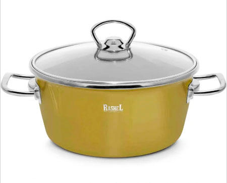 Кастрюля Rashel R6024,4,5 л эмалированная со стекл. кр., ручка хром; цвет: оливковый