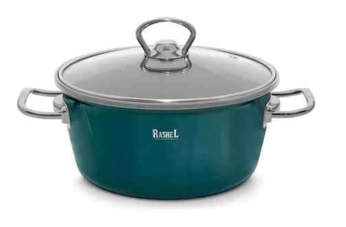 Кастрюля Rashel R0426, 5,2 л эмалированная со стекл. кр., ручка золото; цвет: зелёный