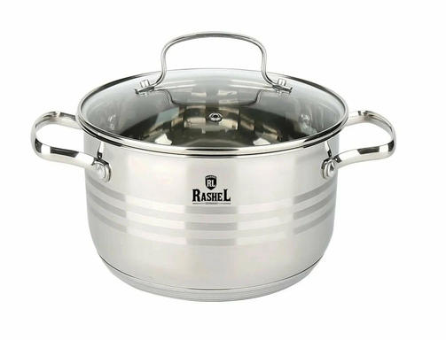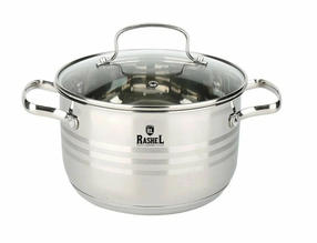 Кастрюля Rashel R-47т, 4,7л из нержавеющей стали со стекл. кр., 22х12,5 см