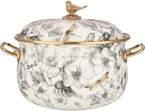 КАСТРЮЛЯ ЭМАЛИРОВАННАЯ AGNESS С КРЫШКОЙ, ЯБЛОНЕВЫЙ САД 4,8Л, ДИА.22СМ ДЛЯ ИНДУК.ПЛ. 950-524