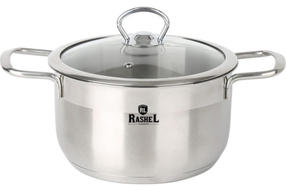 Кастрюля Rashel R-50, 5л из нержавеющей стали со стекл. кр., 24х11,5см