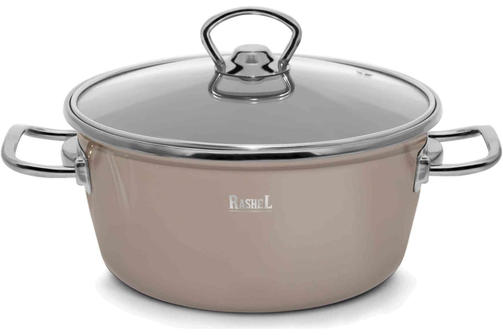 Кастрюля Rashel R2026,5,2 л эмалированная со стекл. кр., ручка хром; цвет:кремово-розовый