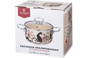 КАСТРЮЛЯ ПАРИЖСКИЕ КОТЫ 3,6л эмалированная AGNESS со стекл. крышкой 22*13см 915-153 Lefard