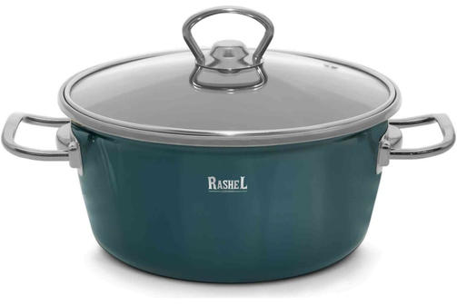 Кастрюля Rashel R4024,4,5 л эмалированная со стекл. кр., ручка хром; цвет: зелёный