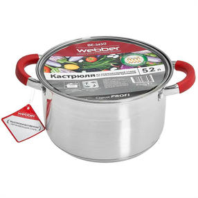 52 343/2 Кастрюля 5,2 л нерж. стекл.кр.д.22