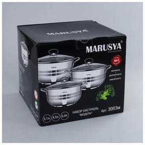 Набор кастрюль Маруся 3003м 6 пр. (3,1л, 4,5л, 6,0л)