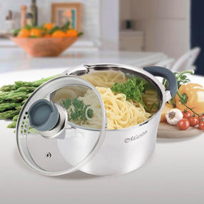 Кастрюля MAESTRO объём 5,6 л (диаметр 24 см) с крышкой в комплекте. Изготовлена из высококачественной нержавеющей стали. Многослойное термоаккумулирующее дно. Подходит для использования на всех типах плит, включая индукционные. На ручках имеются ненагревающиеся накладки. Внутри нанесена шкала объема жидкости. На крышке имеются отверстия для слива жидкости. 3 100,00 ₽ / шт