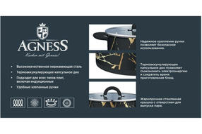 КАСТРЮЛЯ МАКИ 4,6л нерж.сталь AGNESS со стекл. крышкой 22*12см 916-308 Lefard
