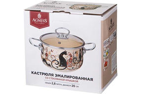 КАСТРЮЛЯ ПАРИЖСКИЕ КОТЫ 2,8л эмалированная AGNESS со стекл. крышкой 20*12см 915-152 Lefard