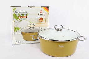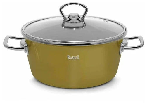 Кастрюля Rashel R6026,5,2 л эмалированная со стекл. кр., ручка хром; цвет: оливковый