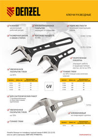 Ключ разводной кованый Denzel 15748 длиной 200 мм, из стали CrV, используется для монтажа и демонтажа крепежных элементов диаметром до 34 мм. Благодаря тонким губкам удобен для работы в труднодоступных местах. Имеет широкую область применения: сантехнические работы, мелкий бытовой ремонт, полупрофессиональная сфера и т. д. Преимущества Прочность и долговечность — ключ изготовлен из закаленной хромованадиевой стали методом ковки. Увеличенный ресурс — кованая конструкция усилена дополнительными ребрами жесткости на рукоятке. Защита от разрушения — фосфатированная поверхность инструмента не подвержена коррозии. Удобная эксплуатация — метрическая линейка на ключе помогает выставить нужный размах зева. Возможность подвесного хранения — в рукоятке предусмотрено специальное отверстие. 1 730,00 ₽ / шт