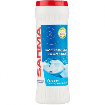 Применение: Для чистки, отбеливания и антибактериальной обработки поверхностей по всему дому, Для чистки посуды от налета, жира и пригоревшей пищи, Для эмалированных, фаянсовых, керамических поверхностей Действие: Устраняет неприятные запахи Возвращает поверхностям первозданную белизну Свойства: Доказанный антибактериальный эффект Не содержит хлор Состав: "Сарма Лимон": абразив, сода, кислородсодержащий отбеливатель (менее 5%), АПАВ (менее 5%), антибактериальный компонент, краситель, отдушка (лимонен). "Сарма Сода-Эффект", ЧП "Сарма Универсал", ЧП "Сарма Свежесть (Антибактериальный)": абразив, сода, кислородсодержащий отбеливатель (менее 5%), АПАВ (менее 5%), антибактериальный компонент, краситель, отдушка. Срок годности: 36 мес. Активные компоненты АБРАЗИВ И СОДА эффективно удаляют налёт, сложные загрязнения, пригоревшую пищу и жир ПОВЕРХНОСТНО-АКТИВНЫЕ ВЕЩЕСТВА расщепляют и удаляют различные загрязнения АНТИБАКТЕРИАЛЬНЫЙ КОМПОНЕНТ (ТРИКЛОЗАН) обеспечивает удаление микробов без хлора КИСЛОРОДСОДЕРЖАЩИЙ ОТБЕЛИВАТЕЛЬ отбеливает поверхность, удаляет пятна от кофе и чая с посуды 83,11 ₽ / шт