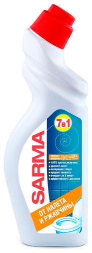 Предназначение: для чистки сантехники, в первую очередь, унитазов. В разбавленном виде подходит для мытья поверхностей в ванной комнате и туалете, а также для чистки лотков домашних животных. Очищающий гель (чистящее средство) для сантехники «САРМА» эффективно УДАЛЯЕТ: РЖАВЧИНУ ИЗВЕСТКОВЫЙ НАЛЕТ МОЧЕВОЙ КАМЕНЬ МИКРОБЫ И БАКТЕРИИ (кишечную палочку, золотистый стафилококк) без хлора устраняет неприятные запахи. ВОЗВРАЩАЕТ БЛЕСК, ЧИСТОТУ И СВЕЖЕСТЬ ОЧИЩАЕТ ЗА 3 МИНУТЫ Результатом использования средств являются чистая, блестящая поверхность, отсутствие микробов и приятный аромат свежести. Свойства: ГУСТАЯ ФОРМУЛА – ЭКОНОМИЧНЫЙ РАСХОД ДОКАЗАННЫЙ АНТИБАКТЕРИАЛЬНЫЙ ЭФФЕКТ (в «Антиржавчина», «Лимон», «Свежесть») ДОКАЗАННЫЙ ДЕЗИНФИЦИРУЮЩИЙ ЭФФЕКТ (в «Дезинфекция») БЕЗ АКТИВНОГО ХЛОРА Легко наносится на поверхность и под ободок унитаза благодаря удобной форме флакона и носику на горловине флакона. Удобный дозатор помогает равномерно и экономно наносить средство на нужную поверхность, тем самым освобождая от необходимости использовать щетку или губку Колпачок с защитой от случайного вскрытия обеспечивает безопасное использование. Чтобы открыть, надавите на уплотнения по бокам колпачка с надписью «push» и поверните против часовой стрелки. Чтобы закрыть, поверните колпачок по часовой стрелке до щелчка Соответствует ГОСТ 32478-2013 Может быть рекомендован к использованию в детских, школьных учреждениях, санаторно-курортных учреждениях, предприятиях гостиничного хозяйства, общественного питания и иных предприятиях и организациях, где требуется очистка, антибактериальная обработка и дезинфекция поверхностей. Способ применения: нанести средство на очищаемую поверхность или под ободок унитаза, оставить не более чем на 5 мин, обильно смыть водой. Рекомендации по применению: При сильных загрязнениях почистить щеткой. Для мытья в разбавленном виде растворить 2-3 колпачка средства в 1 л воды. Работать в резиновых перчатках. Не использовать для чистки: акриловых, лакированных, резиновых, нестойких к коррозии металлов и других чувствительных к действию кислот или поврежденных поверхностей. Перед первым применением взболтать. Составы: Лимон: 5-15%: щавелевая кислота; <5%: ПАВ, отдушка, лимонен, краситель. Антиржавчина, Свежесть: 5-15%: щавелевая кислота; <5%: ПАВ, отдушка, краситель. Дезинфекция: 5-15%: щавелевая кислота; <5 %: НПАВ, бензалкониум хлорид, отдушка, краситель. Срок годности: 36 мес. Активные компоненты ЩАВЕЛЕВАЯ КИСЛОТА удаляет ржавчину и известковый налёт, обеспечивает антибактериальный эффект ПОВЕРХНОСТНО-АКТИВНЫЕ ВЕЩЕСТВА эффективно расщепляют и удаляют различные загрязнения *БЕНЗАЛКОНИУМ ХЛОРИД (в составе Средства чистящего для сантехники «Сарма Дезинфекция») обеспечивает дезинфицирующий эффект 187,23 ₽ / шт