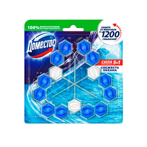 Юнилевер Доместос Блок д/очищ. унитаза ТРИО Свежесть океана 55гр*3/10