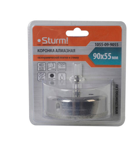 1055-09-9055 Коронка алмазн. по керам. плитке и стеклу 90 х 55 мм, с центрир. сверл. Sturm!