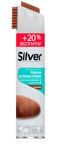 Сильвер SILVER Спрей-восстановитель д/обуви для нубука и замши с кауч щеткой КОРИЧНЕВЫЙ+20% 300мл/12
