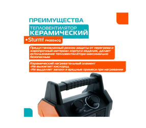FH2034CQ Тепловентилятор керам. Sturm!, 2кВт/1кВт/обдув, 3 режима, защита от перегр/опрокид