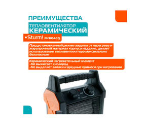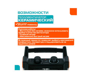 FH3034CQ Тепловентилятор керам. Sturm!, 3кВт/1.5кВт/обдув, 3 режима, датчик опрокид