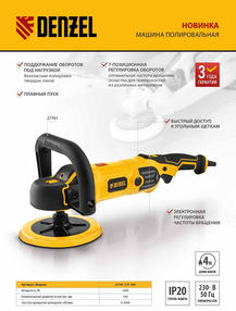 Машина полировальная CP-180, 1400 Вт, 180 мм, 0-3000 об/мин Denzel 27701