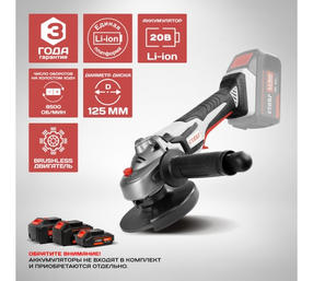 20 В LI-ION единая платформа: Позволяет использовать один аккумулятор с разным электроинструментом и обеспечивает стабильную производительность на протяжении долгого времени. BRUSHLESS бесщеточный двигатель: Обладает высоким КПД и крутящим моментом, низким энергопотреблением, а также повышенной надежностью и сроком службы. 125 ММ диск: Изделие предназначено для работы с отрезными и шлифовальными дисками по металлу. Предохранитель от произвольного пуска: Специальная конструкция выключателя предотвращает случайное включение электроинструмента. Удобство в работе: 3-х позиционная боковая рукоятка с креплением для ключа фланца внутри делает работу с инструментом более удобной. Безопасность: Металлический защитный кожух с быстрозажимным креплением предохраняет пользователя от пыли и искр. Эргономика: Прорезиненная рукоятка гарантирует повышенный комфорт и уменьшает утомляемость при продолжительной работе Кнопка блокировки шпинделя: Дает возможность легко и быстро сменить диск 8 220,00 ₽ / шт