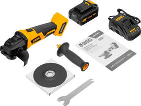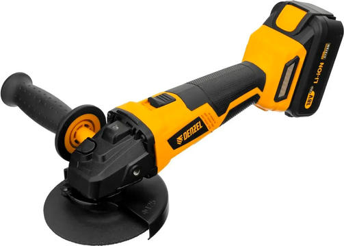 Аккумуляторная углошлифовальная машина Denzel BLG-IB-18-125-4 27005 с бесщеточным двигателем работает от аккумулятора Li-Ion с рабочим напряжением 18 В. Используется с оснасткой диаметром 125 мм для зачистки, шлифования и резки металла, камня, бетона. Мощный двигатель обеспечивает скорость вращения шпинделя 10000 об/мин, что позволяет эффективно решать поставленные задачи. Машина не нуждается в стационарном источнике электропитания, что расширяет возможности ее использования. Преимущества Производительность — современный бесщеточный двигатель обеспечивает высокий крутящий момент на протяжении всего срока службы. Эффективная система пылезащиты — даже при работе с камнем и бетоном попадание абразивной пыли в в двигатель исключено. Быстрая замена оснастки — конструкцией предусмотрена блокировка шпинделя и бесключевое крепление защитного кожуха. Длительная эксплуатация — совместимый аккумулятор с интеллектуальной системой распознавания нагрузки обеспечивает оптимальный расход заряда. Комфортная работа под разными углами — боковую рукоятку можно устанавливать слева, справа или сверху. Универсальность — аккумулятор совместим со всеми инструментами модельного ряда единой платформы Denzel Battery System 18V. Индикатор уровня заряда — мастер сможет вовремя заряжать аккумулятор и избегать непредвиденных перерывов в работе. Быстрая зарядка — УШМ будет готова к работе всего через час. Эргономичность — прорезиненная рукоятка не скользит в руке и гасит вибрации. 16 390,00 ₽ / шт