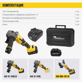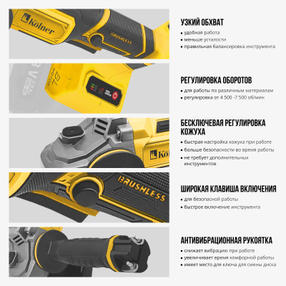 Машина углошлифовальная аккум.(УШМ) 18V UNI-M, BL, 125 мм, Kolner KAG 18BL-125-1K, SLIM BODY, 4500-7